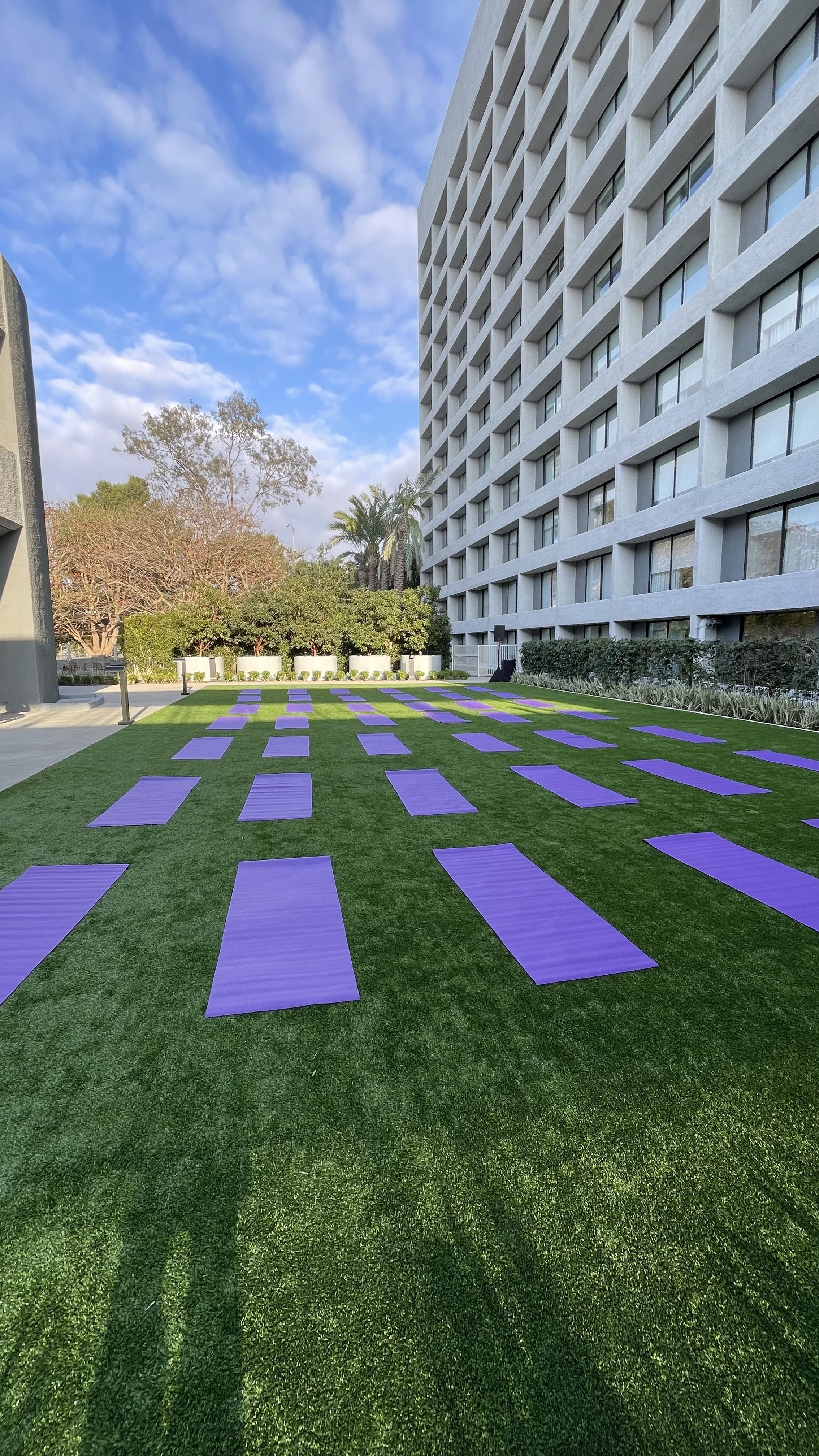 A mental health platform brought their team together for a company retreat at the Hilton in Culver City, just outside Santa Monica. As part of the afternoon programming, they opened up an optional yoga session to whoever wanted in. No mandate, no pressure. Just a chance to move before the evening kicked off.